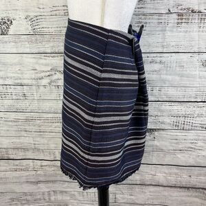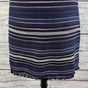 Ann Taylor Loft Skirt size 10 Navy Blue Purple Striped Tweed A Line Fringe Knee