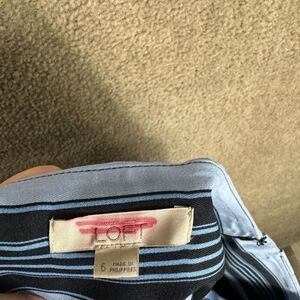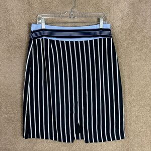 Ann Taylor Loft Skirt Womens 6 Black/Blue Striped Wrap Knee Length Straight
