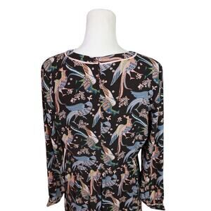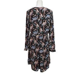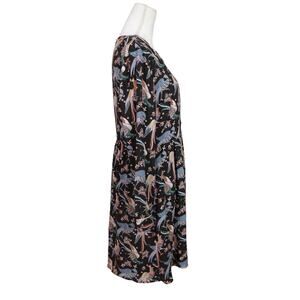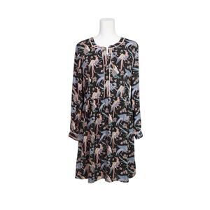 Ann Taylor Loft Snowbird Bird Print Shirt Dress Size 10 Long Sleeve Black Blue