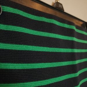 Ann Taylor Loft blue and green stripe pull on stretchy knit midi pencil skirt