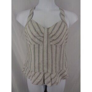 Ann Taylor Loft Stripe Linen Blend Halter Top Size 10 Y2K Tie Neck New