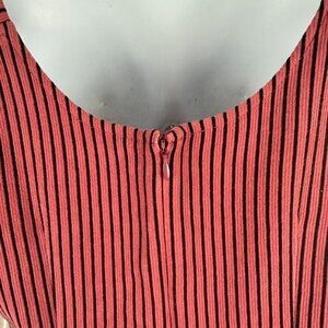 This Ann Taylor Loft dress features a professional aesthetic with its red and black striped pattern. Its A-line silhouette and sleeveless design offer a classic look suitable for various settings. The dress combines cotton and polyester for comfort and durability, making it a reliable wardrobe addition.