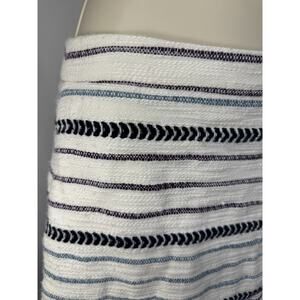 This stylish wrap skirt by Ann Taylor Loft features a chic striped design with fringe detailing along the hem. The lightweight material and versatile neutral tones make it a perfect addition to your wardrobe for spring, summer, or transitional seasons. Designed for a flattering fit, the skirt is both fashionable and functional.
