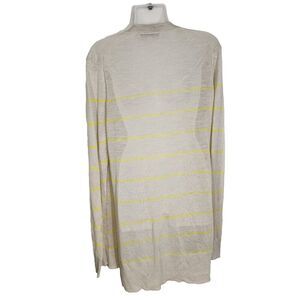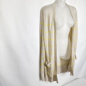 Ann Taylor Loft Sweater Lg Open Front Knit Cardigan Beige Yellow Striped Pockets