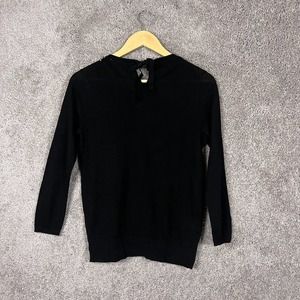 Ann Taylor Loft Sweater Womens Medium Black Rhinestone Neckline 3/4 Sleeve Knit