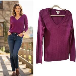 Ann Taylor Loft Sweater Women's Size L Purple Cable Knit Long Sleeve V Neck
