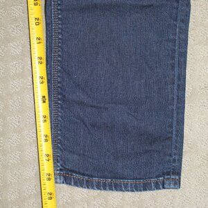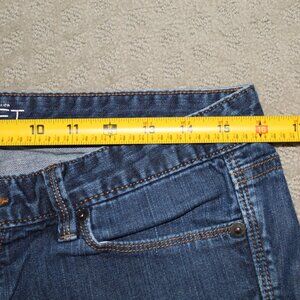 Elevate your wardrobe with these modern straight denim jeans from Ann Taylor LOFT. The dark wash stretch denim is made from a comfortable cotton / polyester / spandex blend and features a solid pattern with a zip closure. The jeans have a mid-rise fit and a straight leg style, perfect for any occasion. With a measured waist of about 16 inches across and an inseam of 28 inches, these jeans are a great addition to any wardrobe. The Loft Modern Straight model is a regular fit and has a tag size of 29 / 8. These jeans are perfect for women who want to look stylish and feel comfortable.