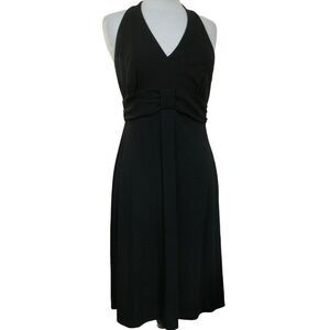Ann Taylor Loft Sz 6 Classic Black Empire Dress LBD Sleeveless Deep V-Neck