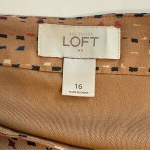 Ann Taylor Loft Tan Neutral Dot Pleated Fall Circle Skirt Fully Lined Size 16
