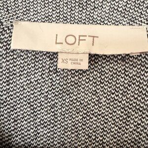 Elevate your wardrobe with this modern designer sweater by Tahari. The cream and black geometric pattern and flattering neckline give it a classic yet stylish look. The 3/4 sleeve and fitted style make it perfect for any occasion. Made of comfortable cotton knit fabric with side slits, this pullover sweater is a must-have for any fashion-forward woman. Available in size XS this Loft sweater is a great addition to any collection.
