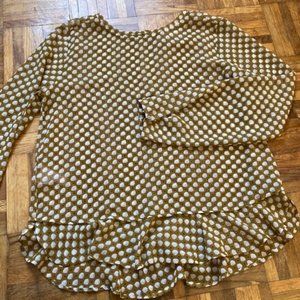 Ann Taylor Loft Tan and White Patterned Flowy Long sleeve Blouse Size Small