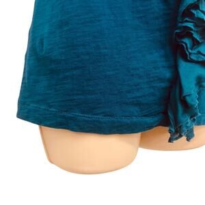 Ann Taylor Loft Teal Blue Textured Ruffled Front Tank Top Wide Scoop Neck