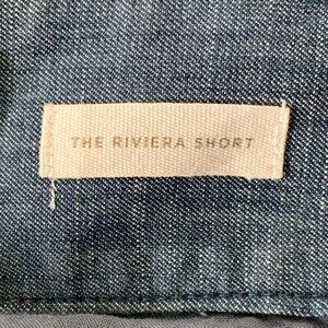 The Riviera Short Lined Chambray Eyelet Embroidered Floral Pattern with 2 Front Pockets.