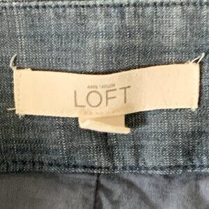 Bring some princess vibes to your casual look with these Ann Taylor Loft The Riviera shorts. Made of 100% cotton chambray fabric, these shorts feature eyelet and embroidered accents that add a Bohemian touch to your outfit. The blue color and floral pattern make them perfect for outdoor events like festivals or rodeos. These mid-rise Bermuda shorts have a flat front and a 4.5-inch inseam, with a waist size of 32 inches. They come with convenient slash pockets and are lined for extra comfort. The zipper button and hooks closure ensures a secure fit. Machine washable and easy to care for, these shorts are a must-have for any fashion-forward girl.