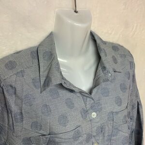 Blue polka dot Button front Lightweight Size medium 18 inches across pit to pit 25 inches long Great condition