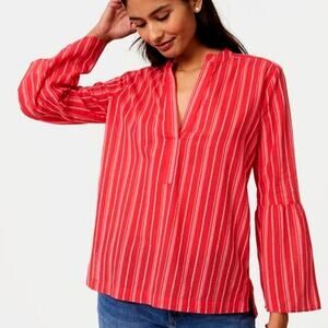 Ann Taylor Loft The Softened Shirt Red White Striped Bell Sleeve Tunic Top - M