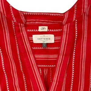 Ann Taylor LOFT the Softened red &white striped bell sleeve high low tunic top.