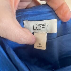 Ann Taylor Loft Top Womens Blue Blouse White Embroider Eyelet Circle Shirt Sz 10.