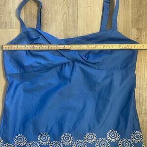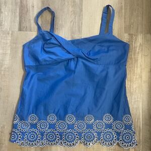 Loft Embroidered Eyelet Twisted Front Cotton Sleeveless Blue Cami Tank Top Size 10