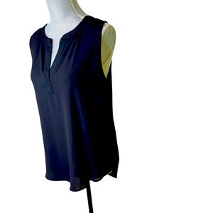 Ann Taylor Loft Top Womens Small Black Sleeveless Chiffon Front Blouse