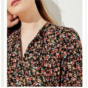Ann Taylor Loft Top Women's 16 Plus Multicolor Floral Collar Split Party Blouse