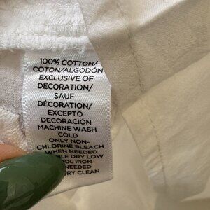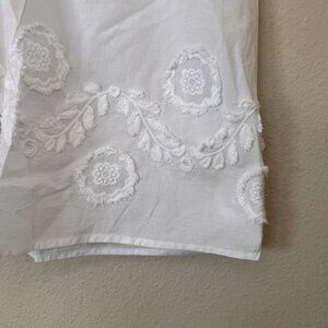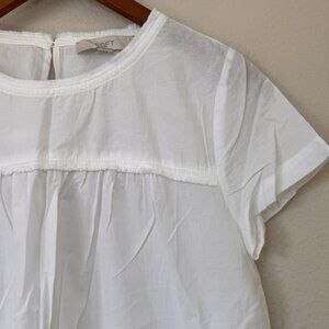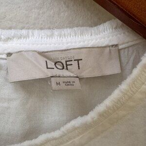 Ann Taylor Loft White Boxy Top Medium Short Sleeve White Blouse Fringe Detail