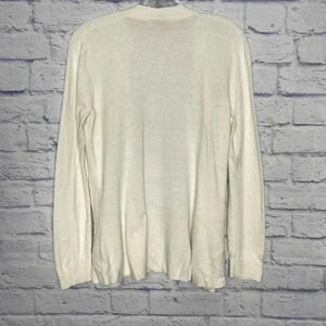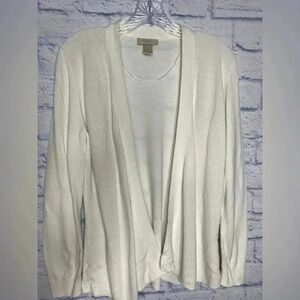 Ann Taylor Loft White Ribbed Open Cardigan Sweater
