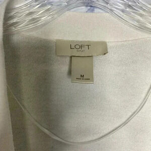 Ann Taylor Loft White Ribbed Open Cardigan Sweater