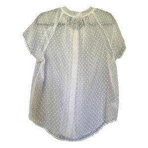 Ann Taylor Loft White Swiss Dot Blouse Short Sleeve Tie-Front Size M