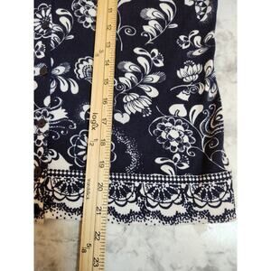 Ann Taylor Loft Women Black Floral Pima Cotton Long Sleeve Button Front Blouse L