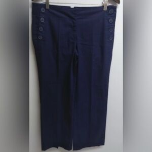 Ann Taylor Loft Women Wide Leg Pants Blue Navy Stretch Buttons Pocket 4