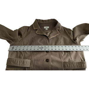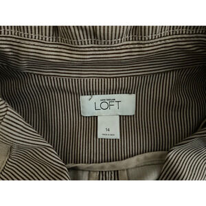 Ann Taylor Loft Women's 14 Tan Brown Striped Blazer Coat Button Front Casual