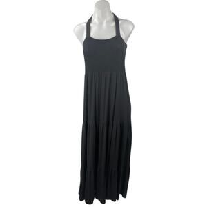 Ann Taylor Loft Women's Black Sleeveless Smocked Tiered Maxi A-Line Tank Dress Size M