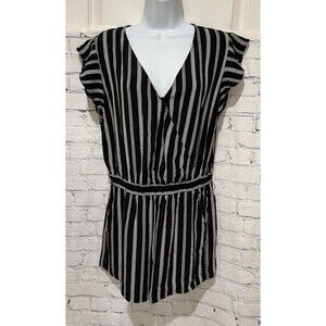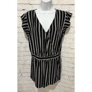Ann Taylor Loft Women's Black White Stripe Short Sleeve With Belt Romper Small