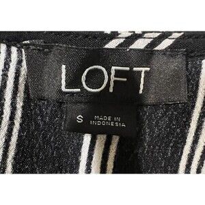 The Ann Taylor Loft Women's Black White Stripe Short Sleeve Romper in size Small is a stylish and versatile one-piece outfit perfect for casual occasions during the summer and spring seasons. The romper features a classic V-neckline, long sleeves, and an elastic waist for added comfort. The black and white striped pattern adds a chic touch to this romper from the renowned brand Ann Taylor, making it a fashionable choice for any woman's wardrobe. This is missing the belt. 18 inches pit to pit, 10 inch rise and 28 inch elastic waist. Smoke free home.