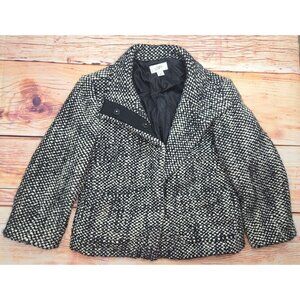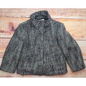 Ann Taylor Loft Womens Black & White Wool Blend Tweed Jacket Medium