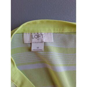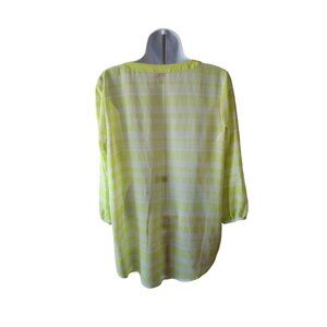 Ann Taylor Loft Womens Blouse Medium Sheer Lime Green Striped V Neck Lagenlook