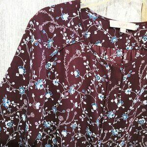 Ann Taylor Loft Women's Blouse Size Large Purple Floral Blue Hidden Button Down