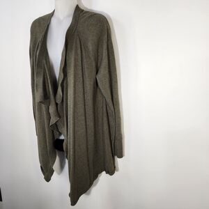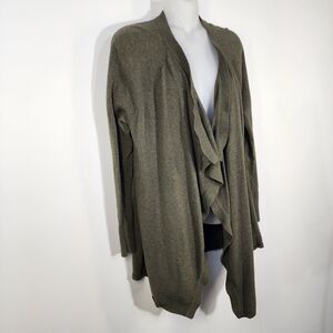 Ann Taylor Loft Womens Cardigan Sweater Large Open Draped Front Wool Blend Green