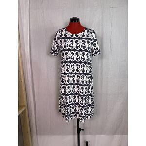 Ann Taylor Loft Women’s Dress Gray White Short Sleeve Knee Length Size XS E105