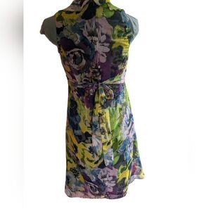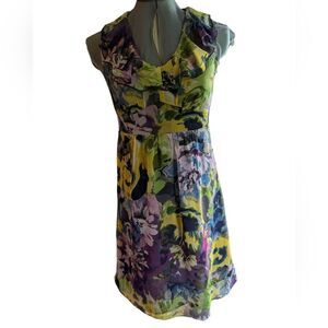 Ann Taylor Loft Womens Dress Size 0 Petite Floral Watercolor Ruffle Neck