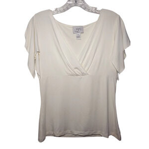 Ann Taylor Loft Womens Flutter Sleeve V-neck Stretch Blouse Cream Size Medium
