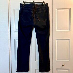 Almost new (worn once or twice) Ann Taylor Loft women's jeans - Blue, size 10, length 30 in. Dark blue straight leg, but curvy in the hips. Stretch material.