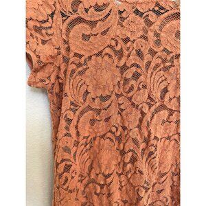 Ann Taylor Loft Womens Lace Orange Blouse Small short sleeve round neck cotton
