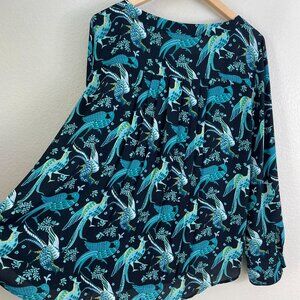 Ann Taylor Loft Womens Large Bird Peacock Print Blouse Long Sleeve Shirt Top