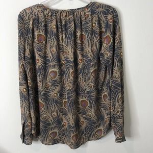 Ann Taylor Loft Women's Peacock Feather Button Up Long Sleeve Blouse Size XS