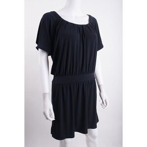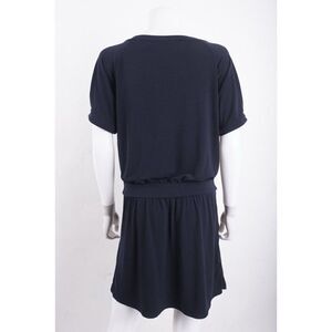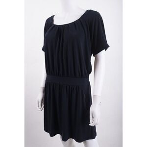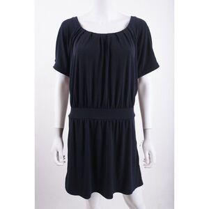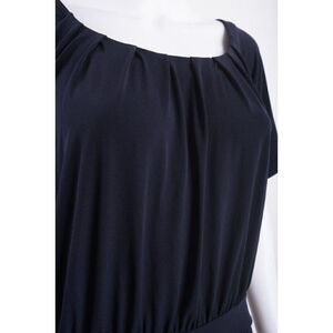 Ann Taylor Loft Womens Pleated Dress M navy blue A-Line Flowy Knee length Pockets