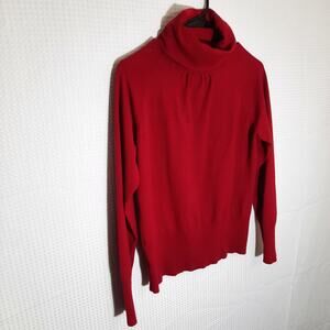 Ann Taylor Loft Women’s Red Turtleneck Sweater L Soft Knit Rayon Nylon