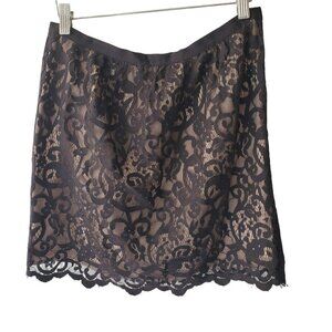 Ann Taylor Loft Womens Sheer Black Lace Pencil Skirt Scalloped Hem Lined Size 2