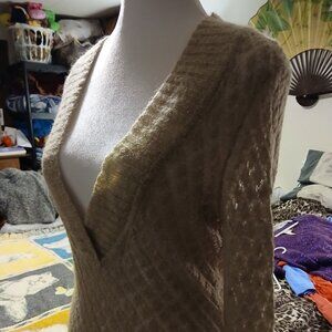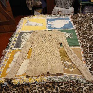 Ann Taylor Loft Women's Size Small Cream Gold Long Sleeve Deep V Neck Sweater